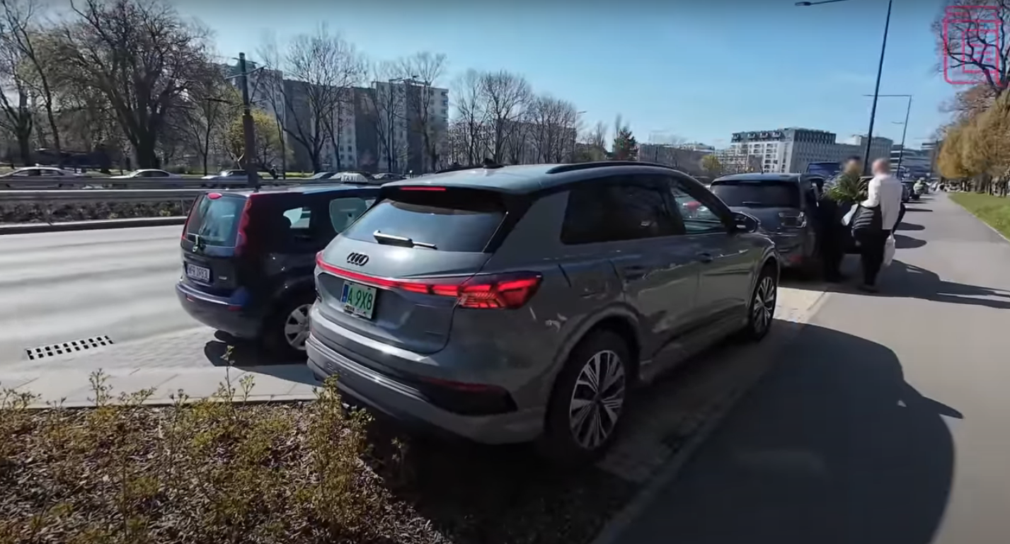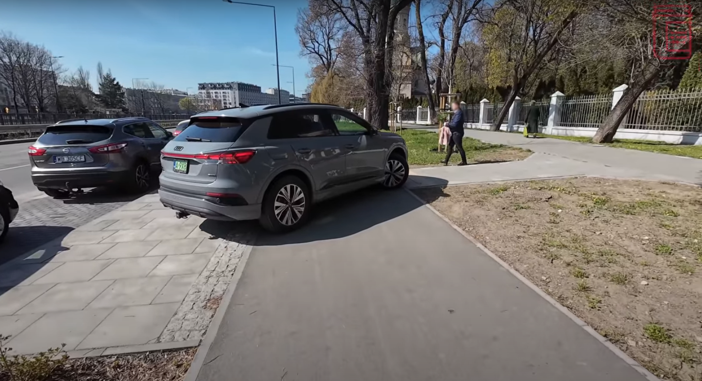 Parkuje na chodniku.