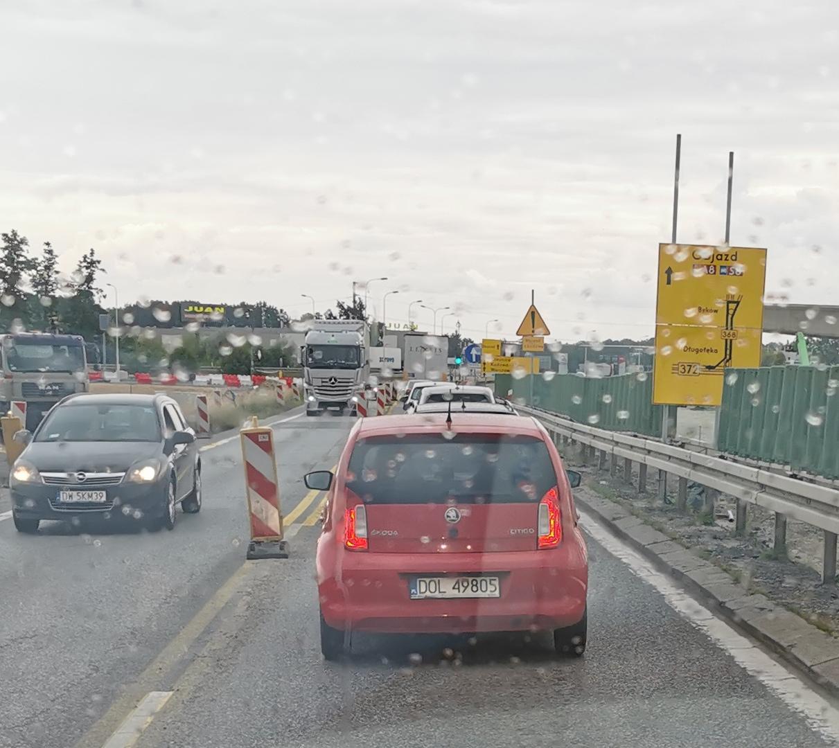 Raszpa w czerwonej CityGo, nie stosuje jazdy na suwak, dodatkowo niesprawne oświetlenie.