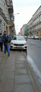 Taksówkarz urządza sobie postój na chodniku. W tym miejscu obowiązuje zakaz zatrzymywania