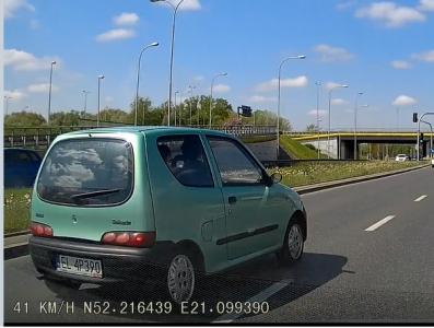 Bohater filmu przez kilka kilometrów grzecznie jechał za mną i przed zjazdem na wiadukt zapragnął mnie wyprzedzić czymś z silnikiem o 110KM słabszym od mojego, do tego zapakowanym ludźmi. Właśnie zamierzałem przyśpieszyć, kiedy to Scheisse mi wjechało pod maskę i dobrze, że tego nie zrobiłem, potem musiałbym szarpać się z jego bieda-ubezpieczalnią. Chyba nie przyszło mu do przegrzanego łba (trudno w tym pudełeczku o klimatyzację, a na zewnątrz było 25 stopni), że pojadę prosto.