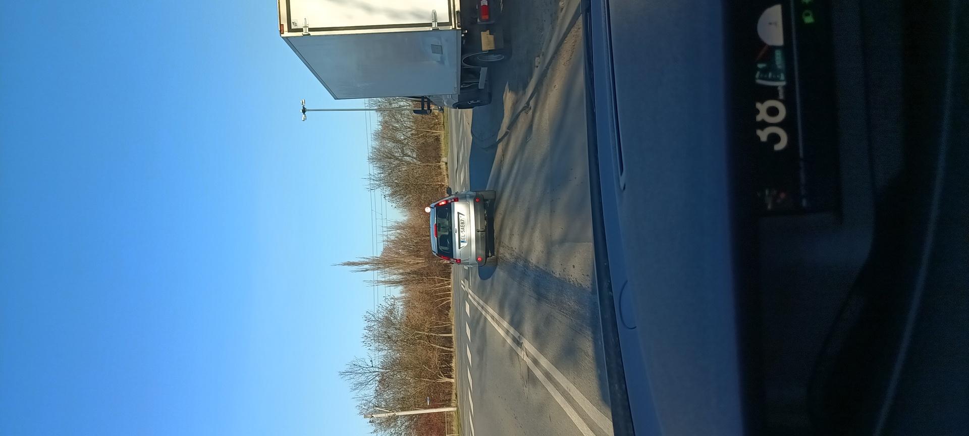 Stara baba jedzie 35-40 km/h po mieście i śmieci , wyrzucając papiery przez okno