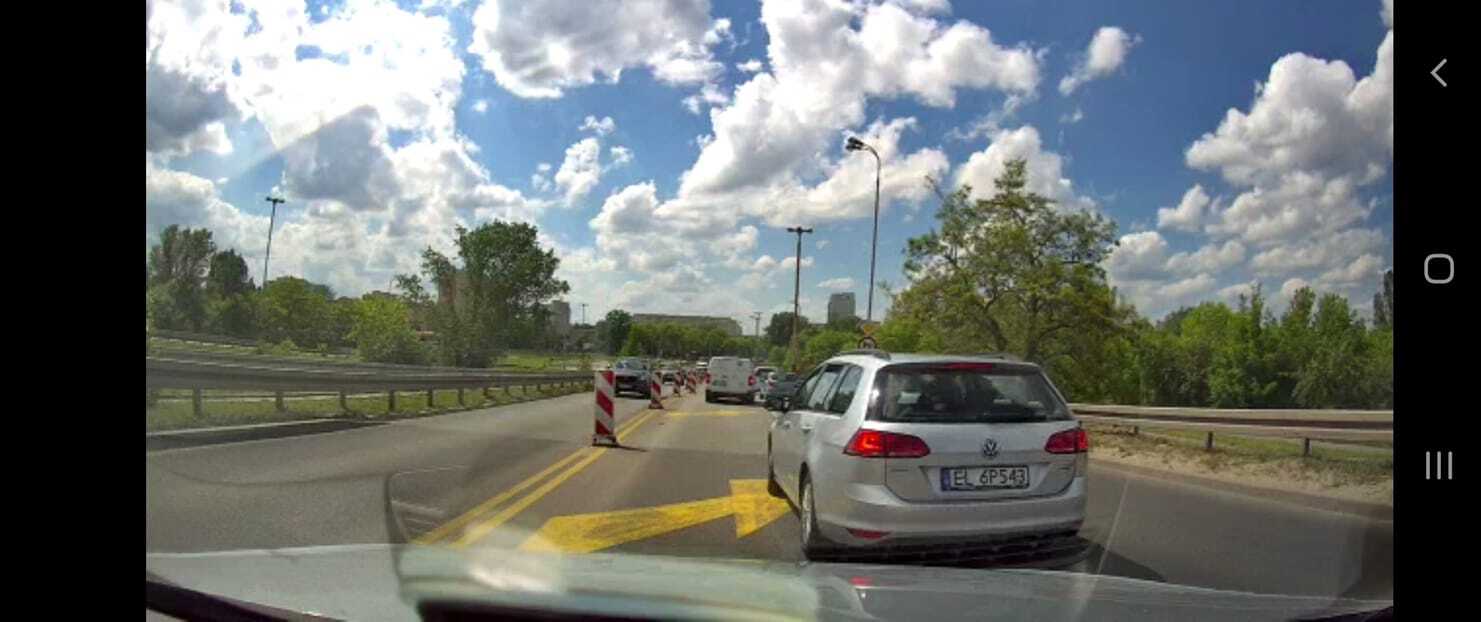 Nasz wspaniały bohater pilnuję, aby żaden cwany kierowca nie przejechał przypadkiem zgodnie z przepisami do końca zwężenia i nie wjechał na suwak