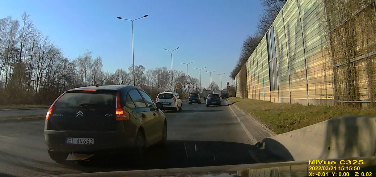 KUTAS NIE USTĘPUJE PIERWSZEŃSTWA I NIE WPUSZCZA NA ZWĘŻENIU DO JEDNEGO PASA MIMO NOWELIZACJI PRZEPISÓW I KONIECZNOSCI JAZDY NA SUWAK .