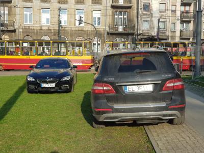 Parkuje na trawniku.