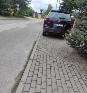Kolejny raz parkowanie w 100% zajmując chodnik jeszcze na skrzyżowaniu. Dodam że w podwórku jest miejsce na auto.