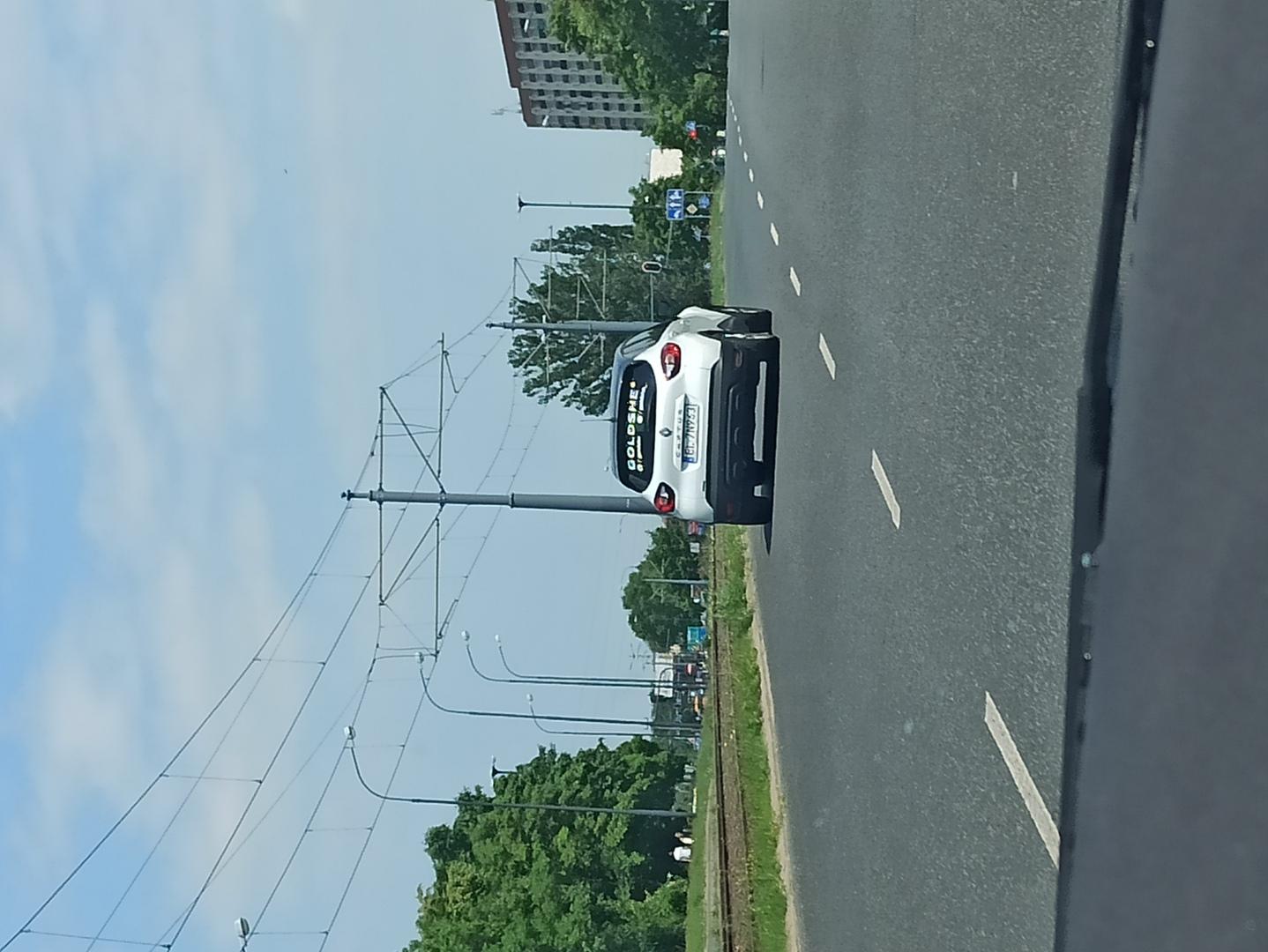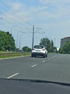 Kobieta jadąca tym autem prowadzi firmowy samochód. Wjeżdża na rondo z zagrożeniem dla innych kierowców nie stosując się do ustąpienia pierwszeństwa. Następnie wyzywa innego kierowcę, w który prawie nie wjechała od złamasów. Naucz się jeździć. Prawko wygrane w chipsach.