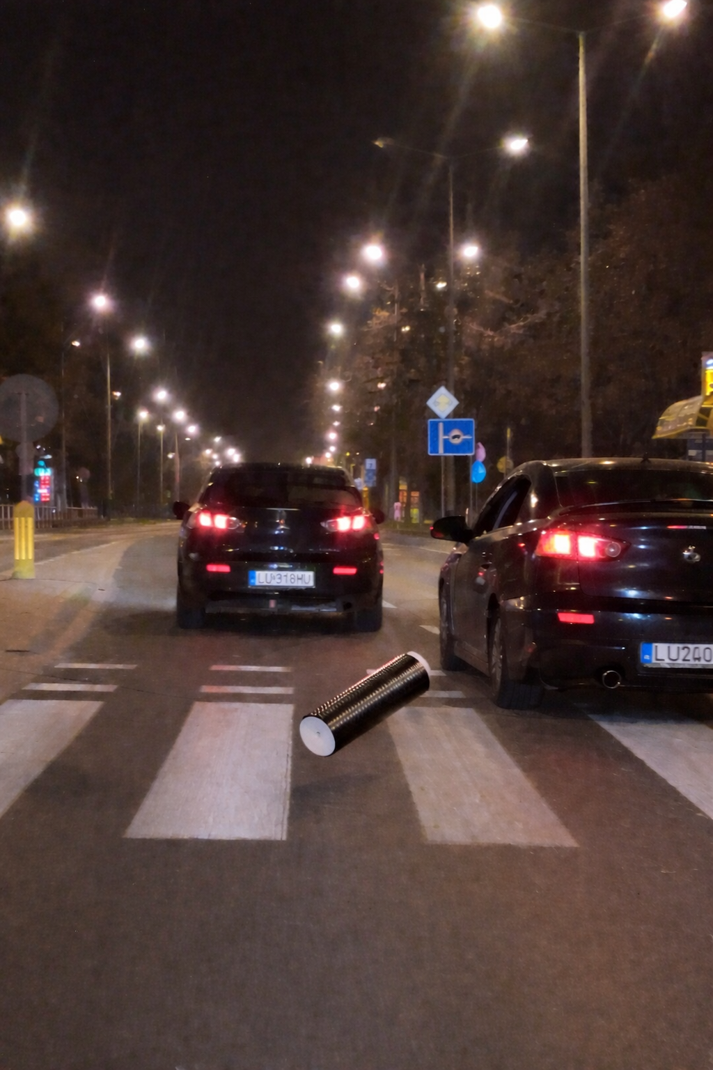Kierowca samochodu Mitsubishi Lancer Wyrzucał za siebie rolki karbonu więc zacząłem migać mu długimi w końcu się po czasie zatrzymał upomniałem go żeby nie śmierdził bo zagraża to ruchowi drogowemu więc stanowi niebezpieczeństwo na drodze stwierdził że to oleje i pojechał dalej