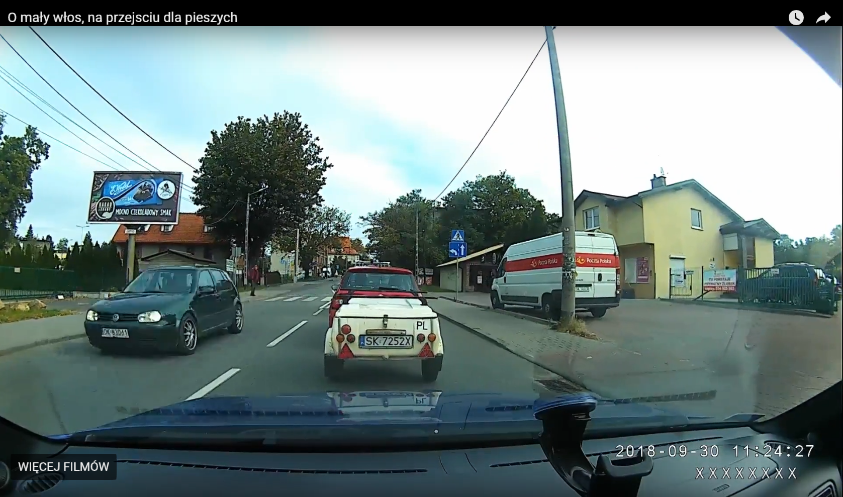 Dlaczego pieszy biegnie przez przejście i naraża kierowcę golfa?