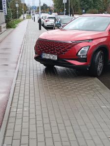 Parkuje się na chodniku , brak przejścia.