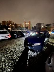 Brawo dla kierowcy, który zablokował wyjazd z miejsc parkingowych. Zdjęcie wykonane na szerokokątnym.