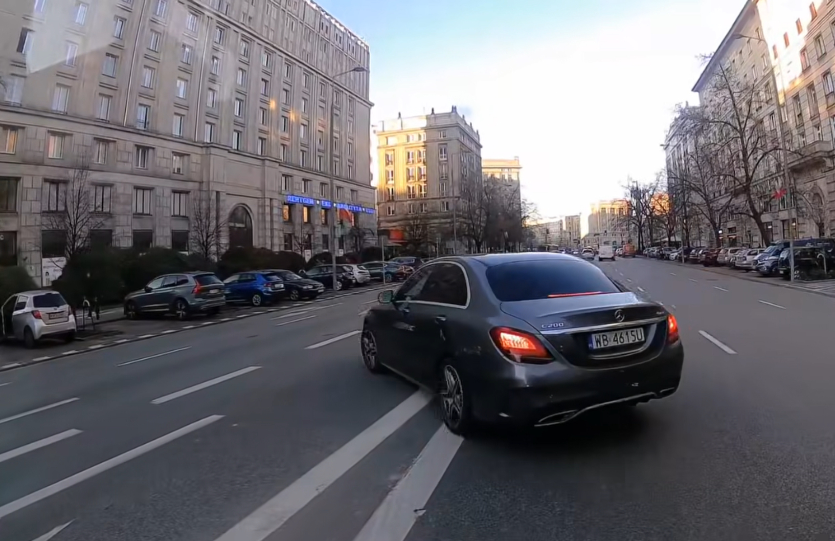 Kierująca nie stosuje się do znaków i trąbi na kierowców z pierwszeństwem. Na zdjęciu znak którego nie widzi