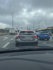 Telefon w ręku dojeżdża Do zderzaka przy prędkości 80 na godzinę trąbi że się za wolno jedzie prawym pasem na drodze Czosnow-Lomianki gdzie ma lewy do wyprzedzania agresywny zaczepia innych na drodze Widziałem że prawie spowodował stłuczkę na wiezdzie do Łomianek wysiadł do niego gość i go chciał uspokoić On nie powinien mieć prawa jazdy takich ludzi należy eliminować z drogi
