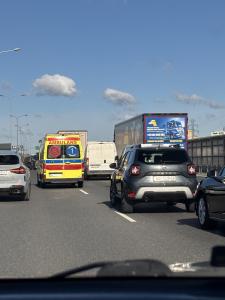 A2 obwodnica Warszawy w kierunku centrum: głupia babo, korytarz życia to nie okazja do zmiany pasa. Nie zajeżdżaj karetce drogi oraz później innym samochodom!