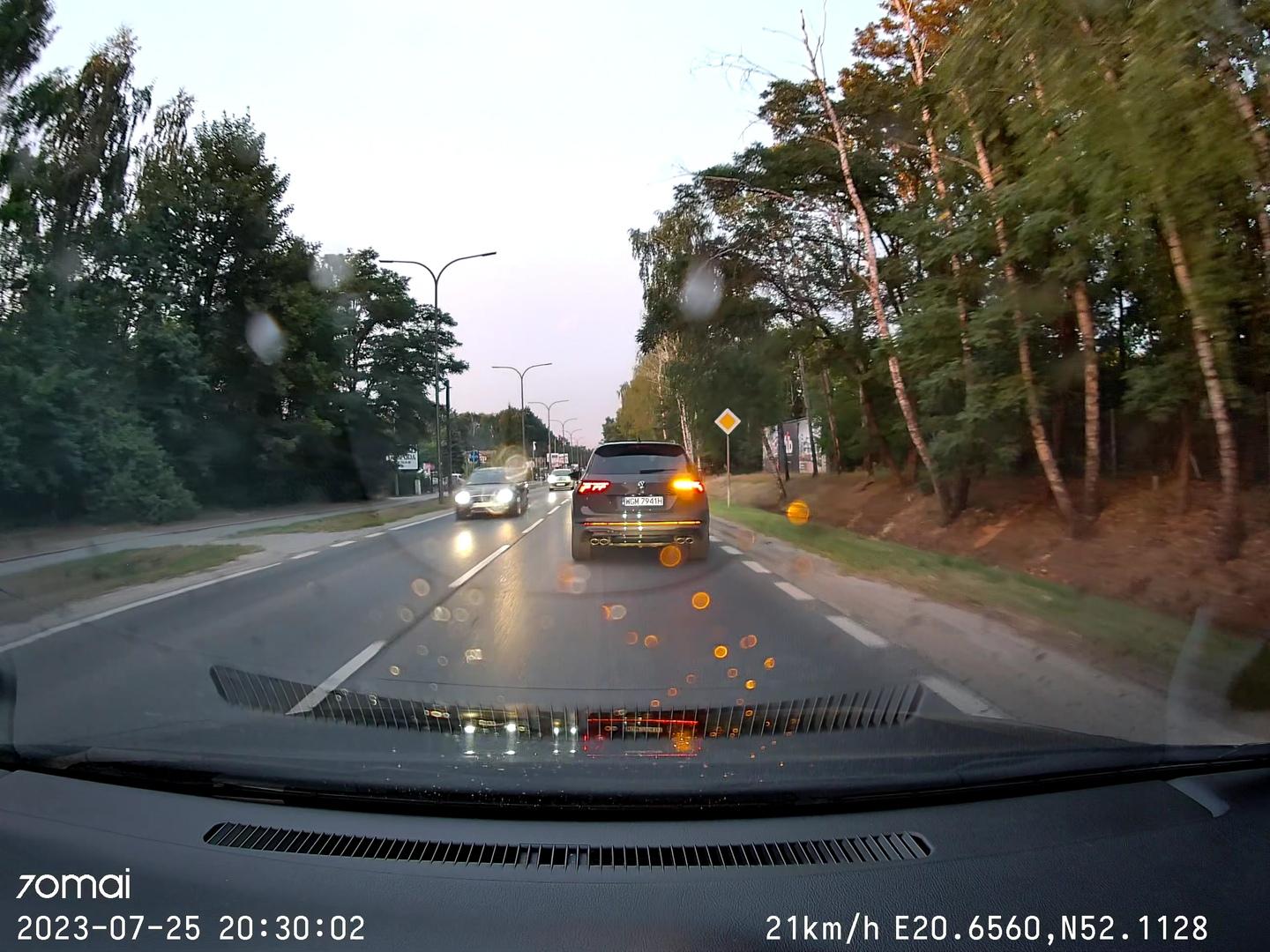 Zmusza do zjeżdżania na pobocze innych pojazdów dając sygnał światłami.