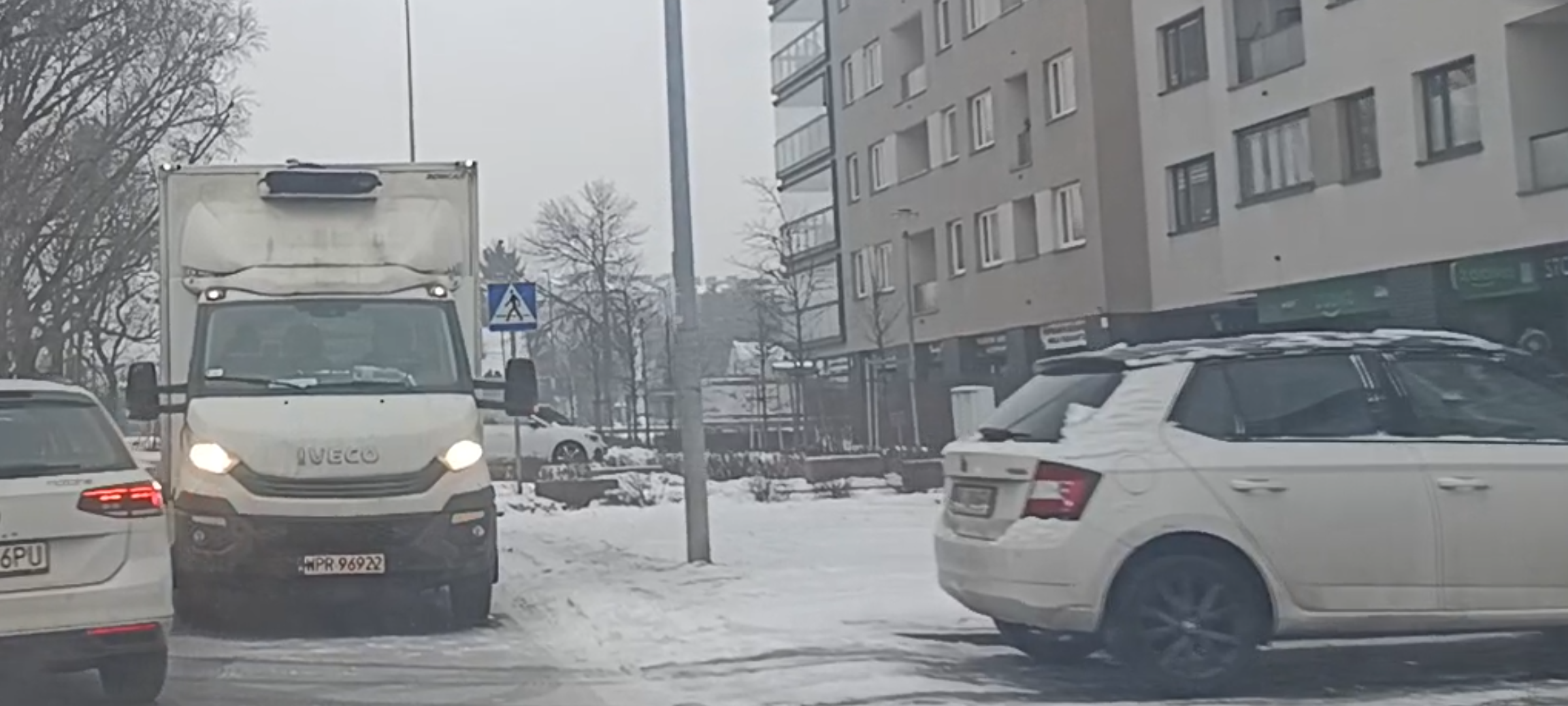 Bandyta drogowy postawił wraka przed samym przejściem dla pieszych zasłaniając całkowicie widoczność a to miejsce o bardzo dużym ruchu drogowym i pieszym