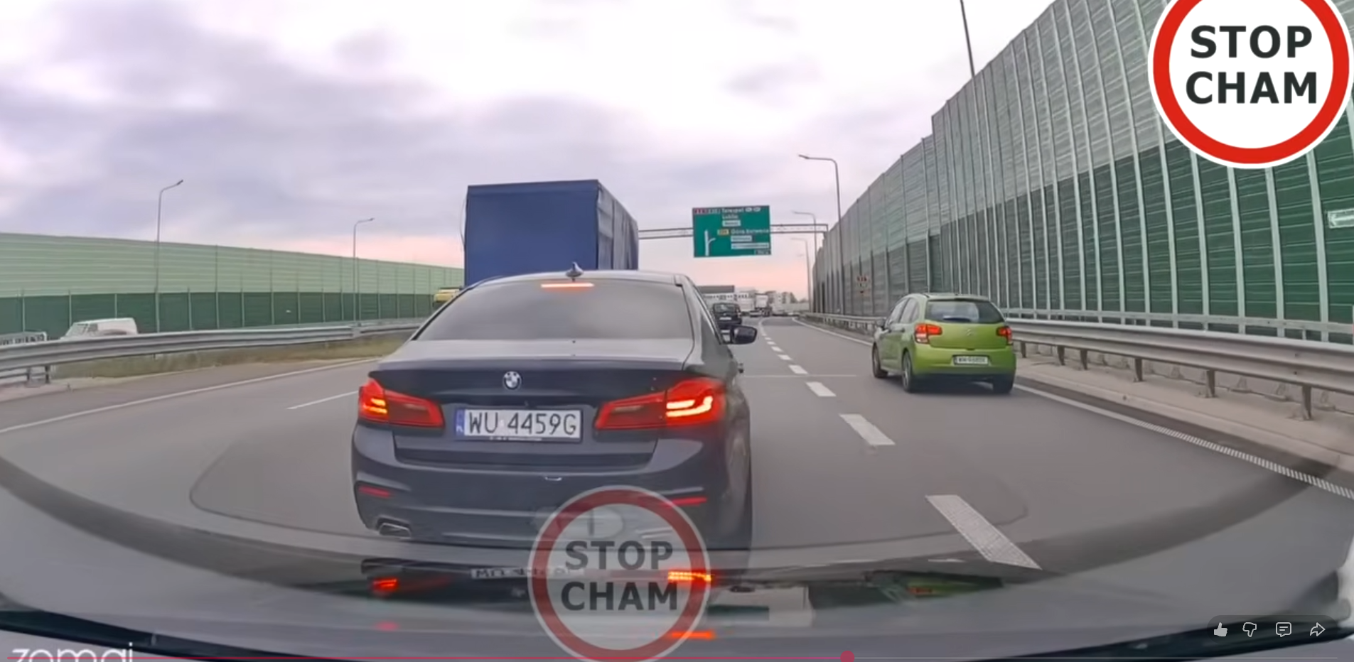 Kierowca samochodu Kia na autostradzie zjeżdżał na mój pas bo gapił się w dół przez co zostałem zmuszony wjechać na trawnik po czym jechał za mną i mi mrugał że to mój błąd po czym podjechał do mnie na pasie obok i patrzył się na mnie z grymasem