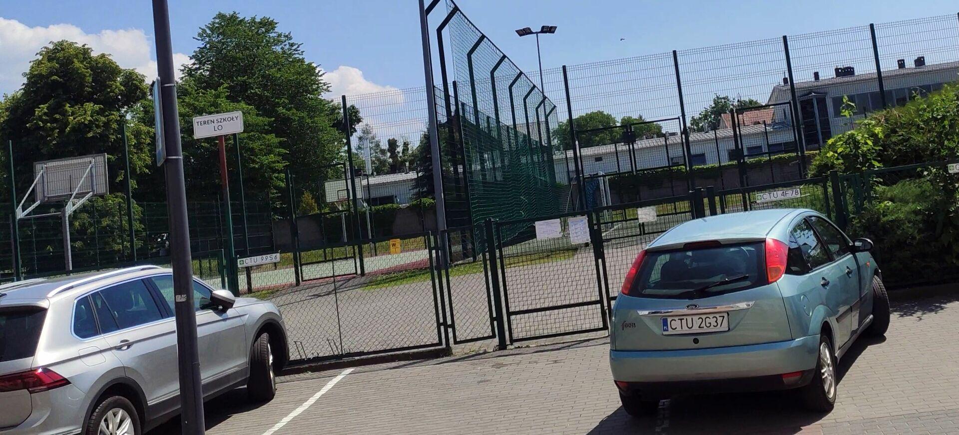 Gruba świnia urządza sobie samowolkę zajmując publiczny parking koło szkoły i samemu na płocie wieszając tabliczkę z własną rejestracją.