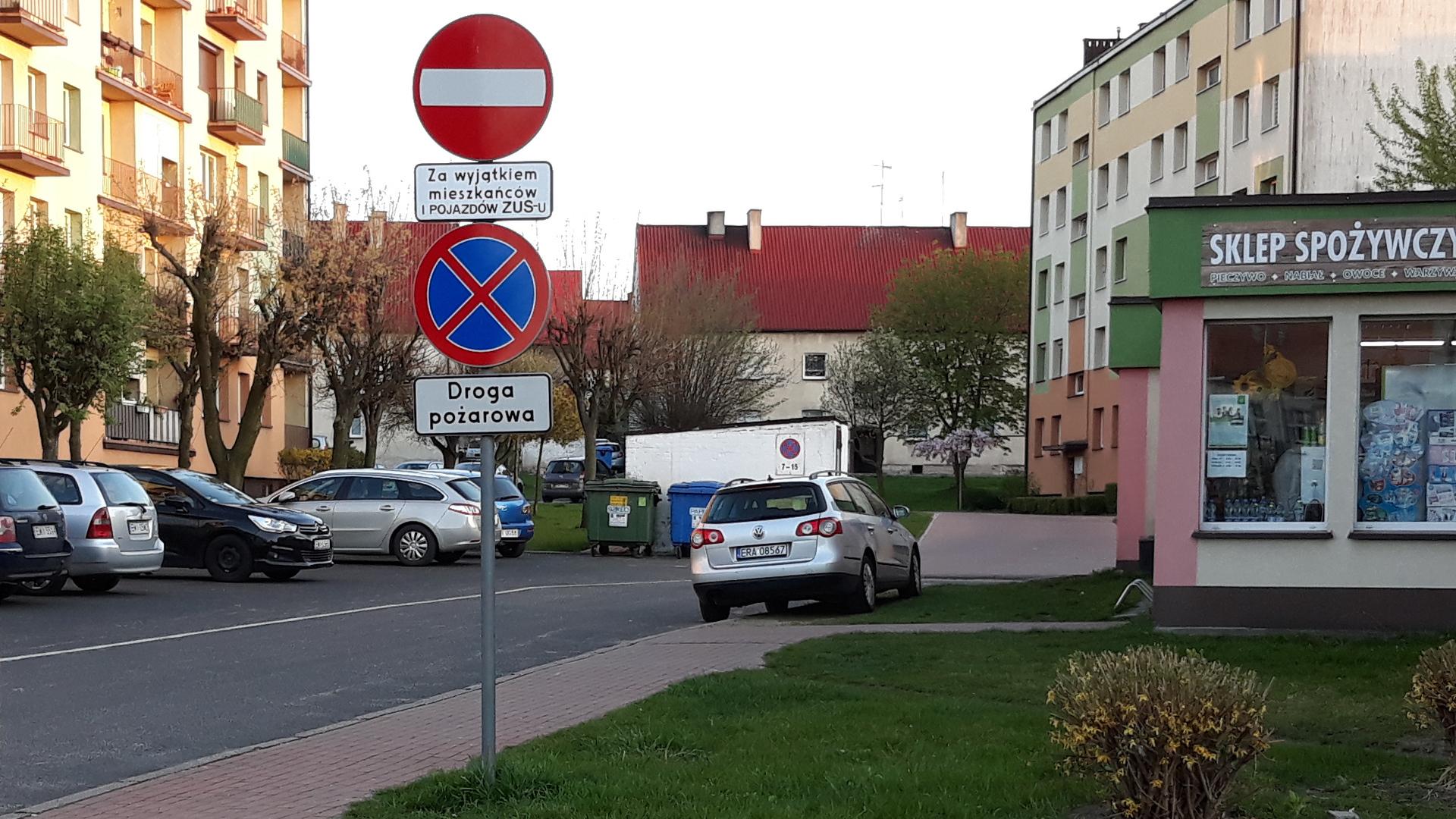 Parkowanie na trawniku, parkowanie na drodze pożarowej, parkowanie na zakazie zatrzymywania się, ignorowanie zakazu wjazdu.