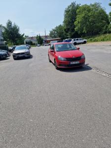 Srebrna skoda fabia z naklejką „quaskai”