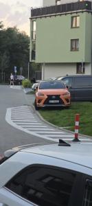 Takie pomarańczowe łaciate BMW tak jeździ to szybko po Krakowie Tak to ten wydech ma taki głośny przecież on ma tam taki guzik bo to nowy samochód i może zmniejszyć głośność jak jeździ po mieście No ale nie to on ma brodę bo on jest Gannc