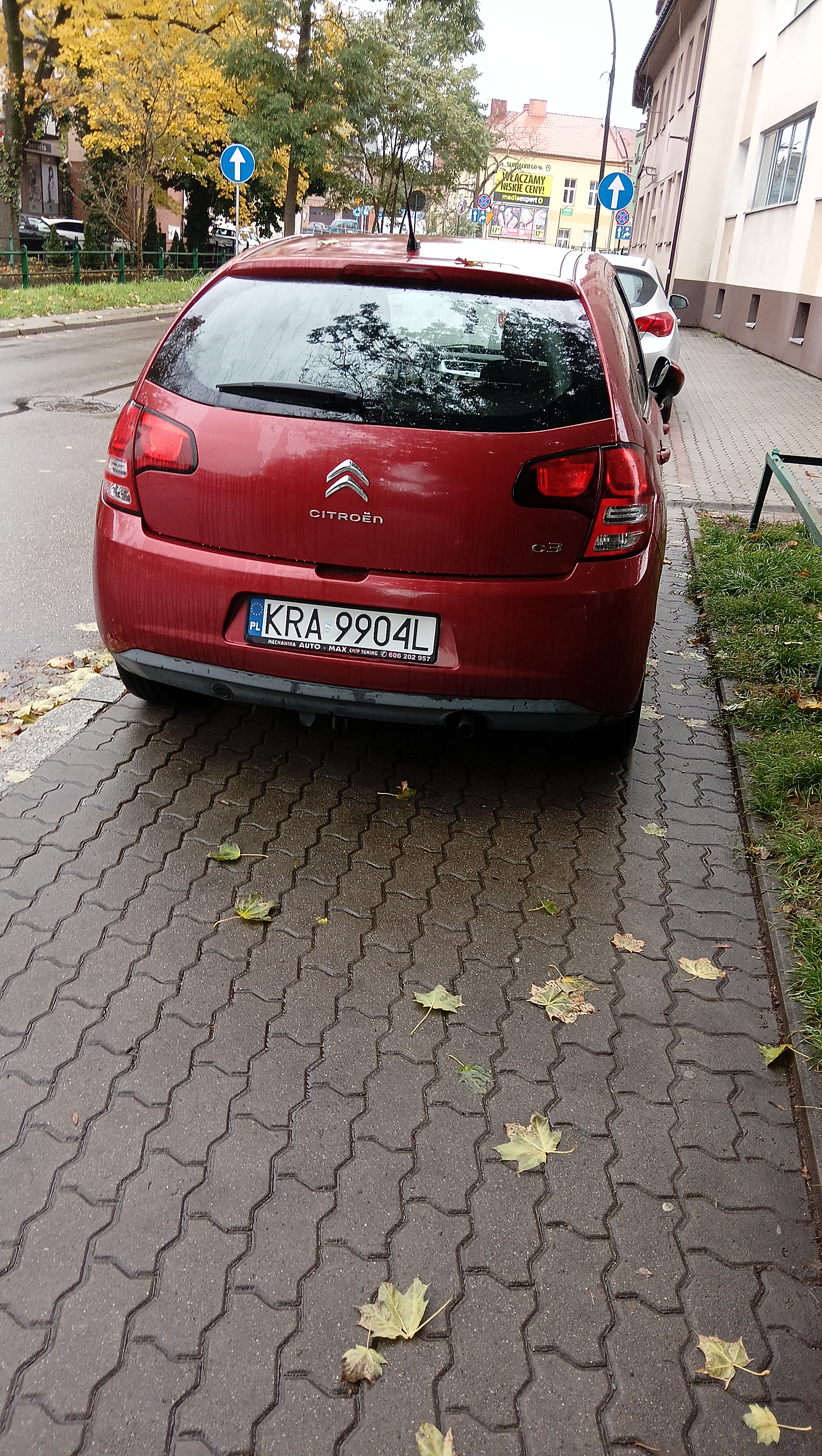 Parkowanie równoległe na chodniku wykonane poprawnie.