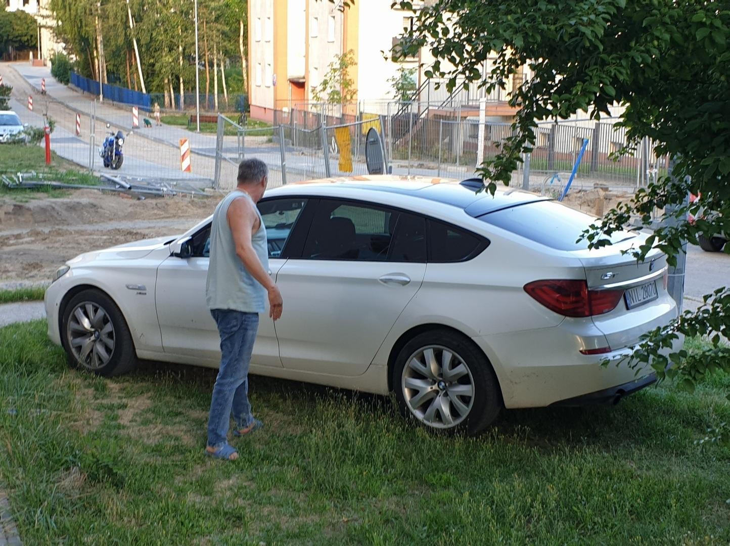 Pan właściciel (widoczny na foto) to człowiek nikłej kultury osobistej oraz społecznej, ponieważ za nic ma tereny zielone i przepisy ruchu drogowego. Nie pozdrawiam
