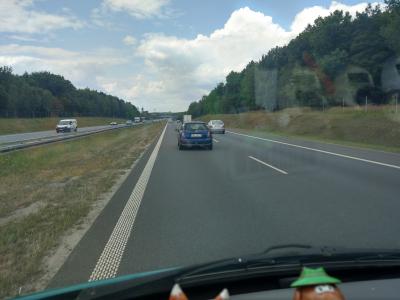W połowie wyprzedzania golfa, Pani nie popatrzyła w lusterka i gdyby nie chamowanie i odbicie w stronę rowu skończyło by się stłuczką. Polecam patrzeć w lusterka albo wrzucić prawo jazdy z powrotem do chipsów.