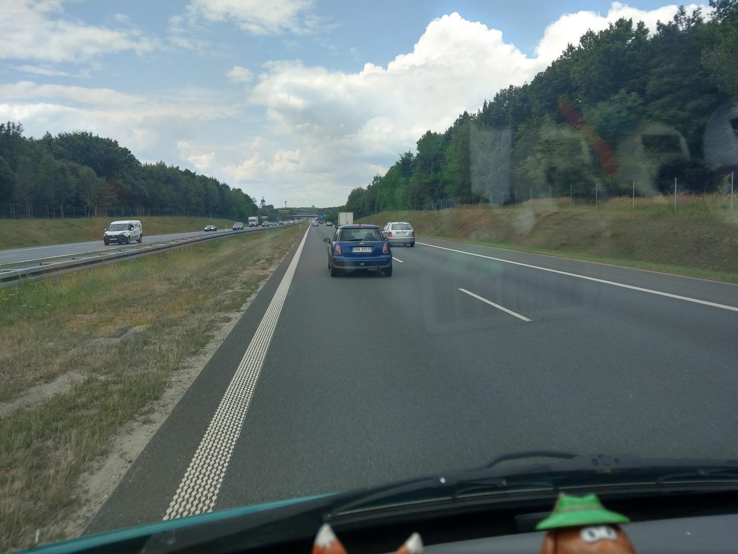 Panicz w zacnym mini przyklejony do lewego pasa pier.oli kierunkowskazy i wymusza pierwszenstwo