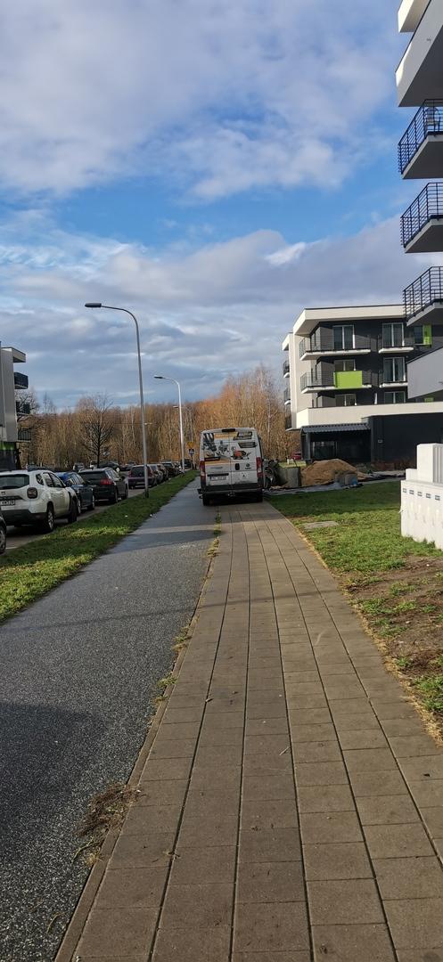 Panowie załadowani ponad 1 paleta cementu jeżdżą, parkują i stoją kilka godzin na świeżo wyremontowanym chodniku. 3m w lewo za zielenią wolne miejsce. Równolegle z ich maszynka do podawania betonu...