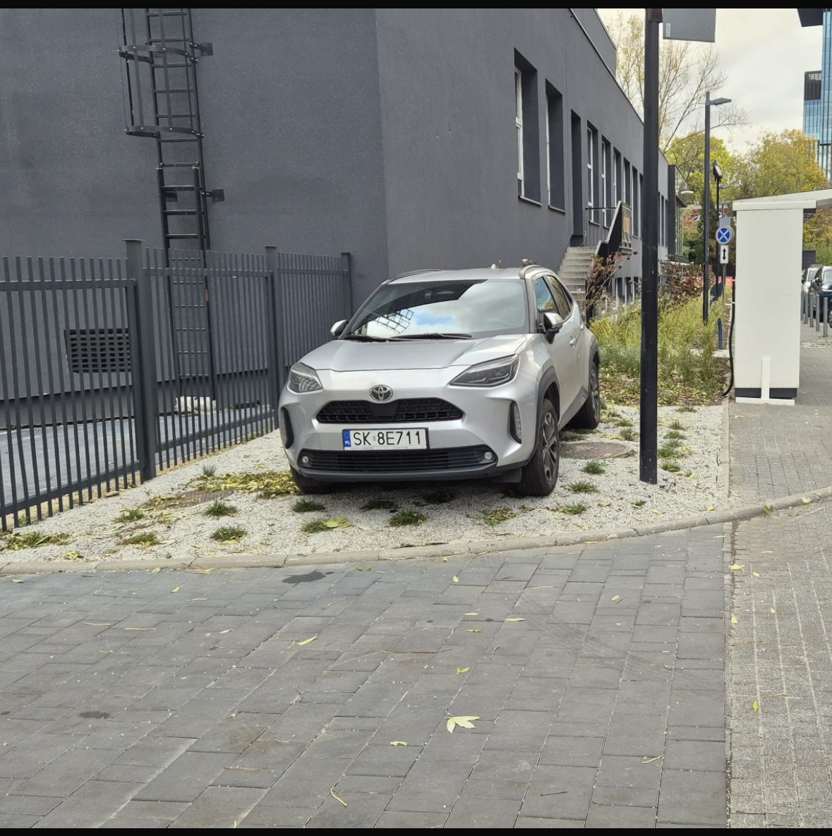 Dupku żołędny naucz się parkować… czyste chamstwo parkować na nowo zasadzonych kwiatkach. WSTYD