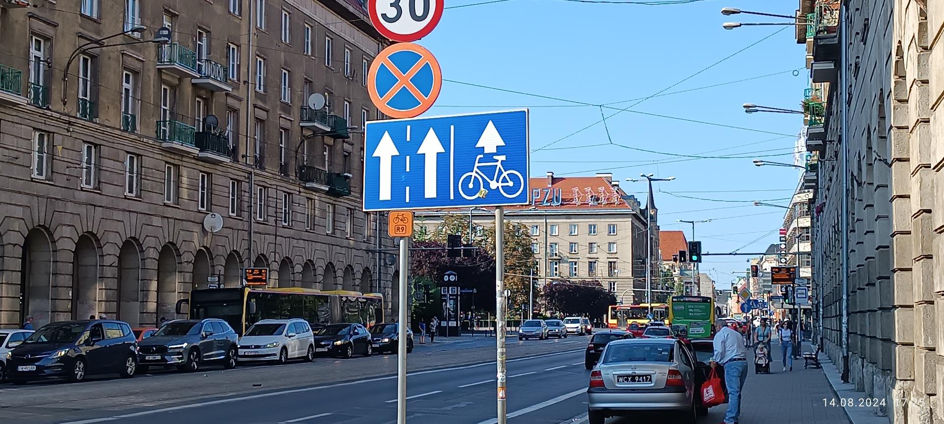 Parkowanie za znakiem B-36 i przy linii P-17, widocznie właścicielowi kantoru spod wrocławskich arkad wszystko wolno.
