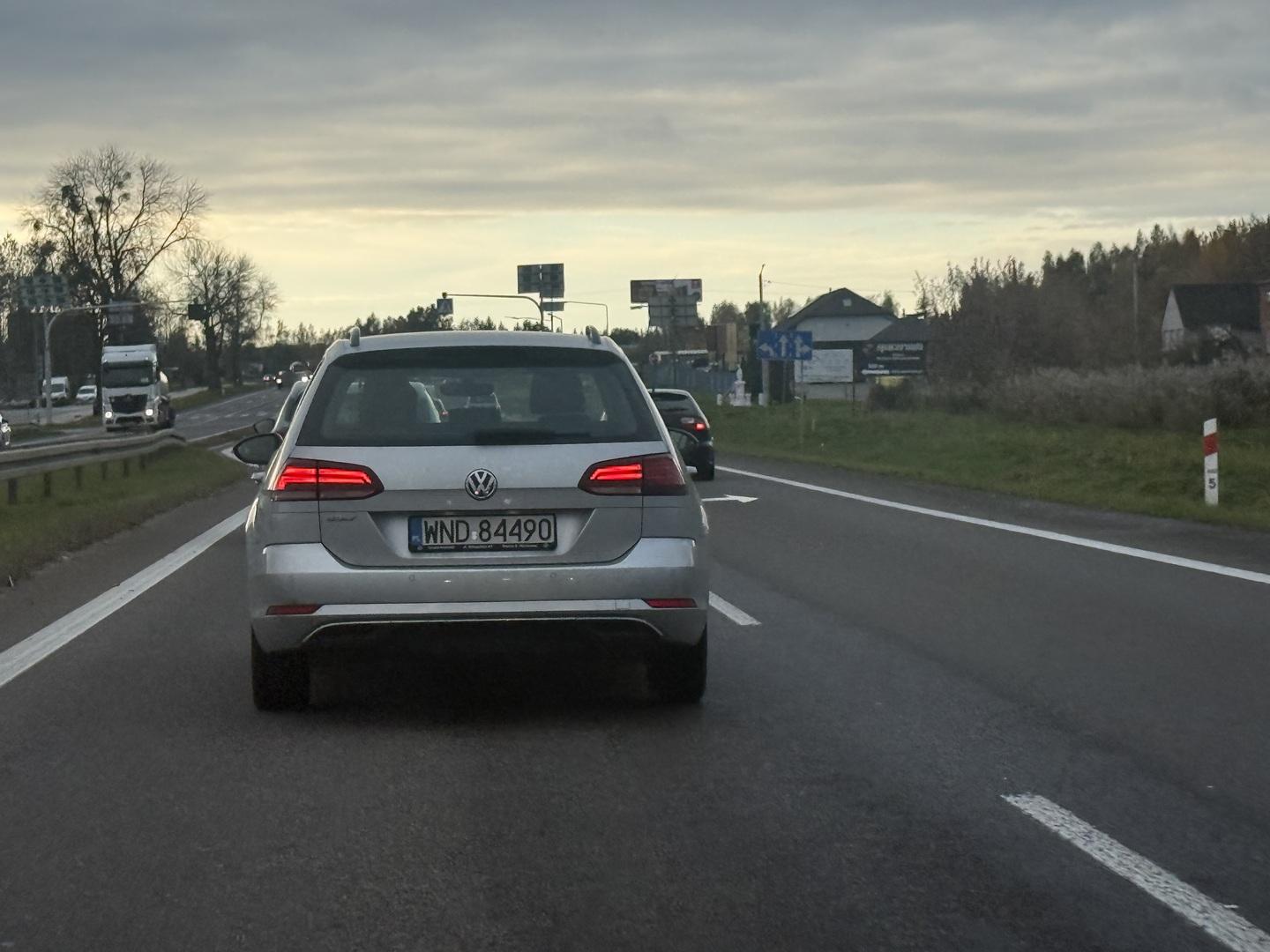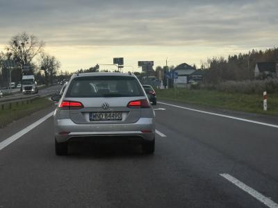 jazda lewym pasem z telefonem w ręku. Zajeżdżanie drogi i hamulec.