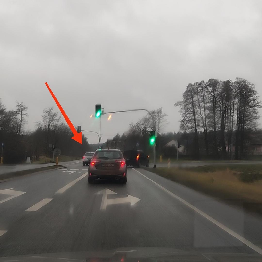Z pasa dojazdu na wprost skręca w lewo