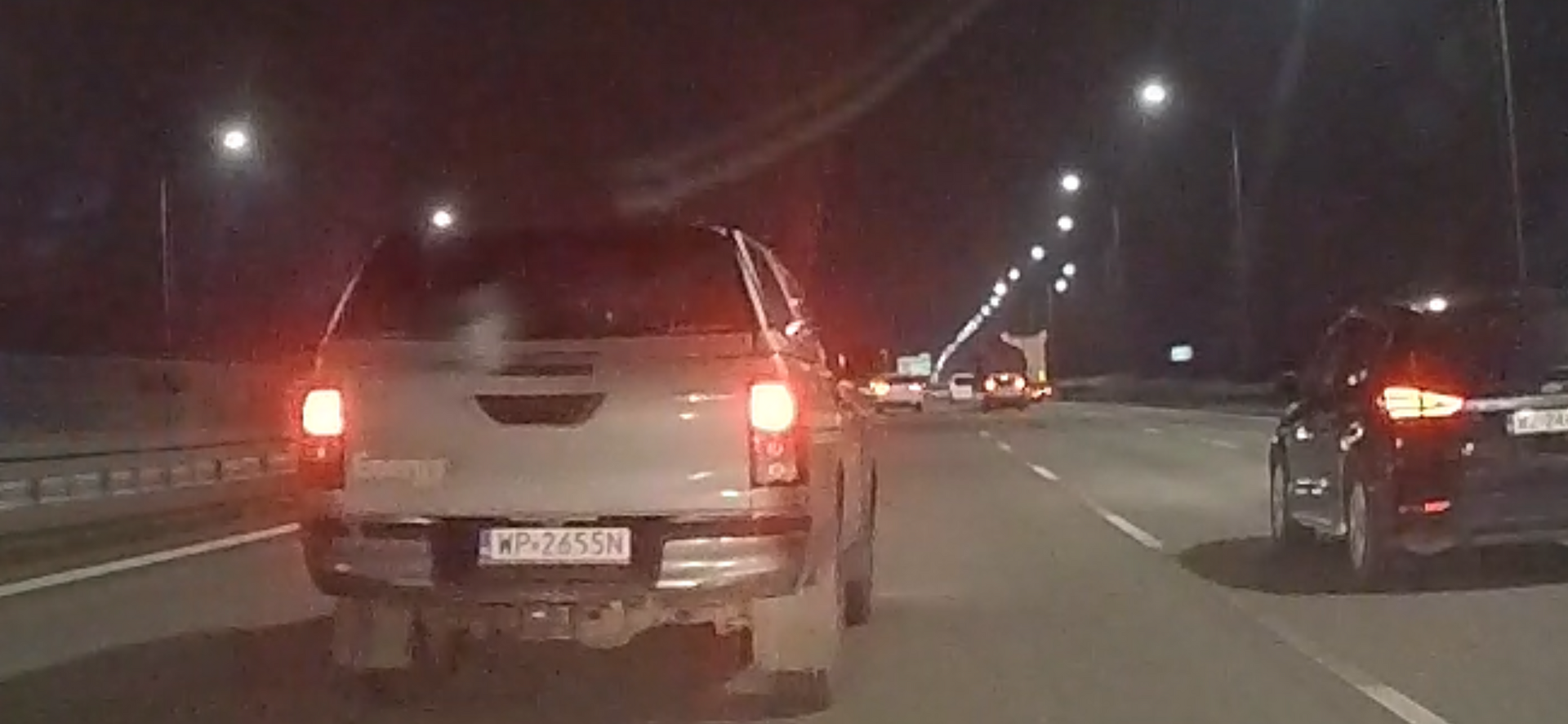 Kierujący pojazdem na południowej obwodnicy Warszawy wymusza hamowanie pojazdu zajeżdżając drogę.