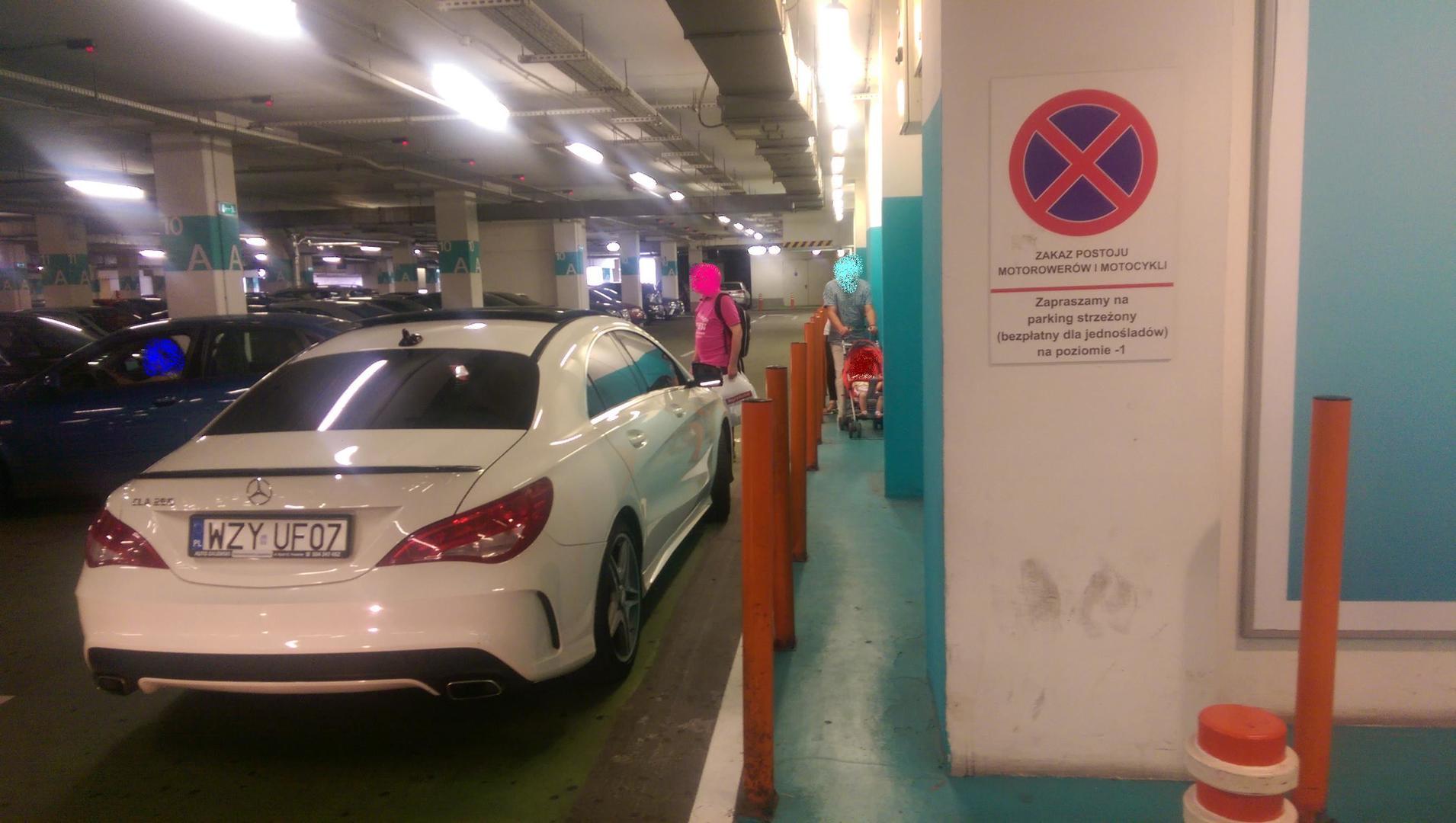 Kolejny burak, który myśli, że dobry samochód jest równoznaczny z możliwością nieprzestrzegania przepisów. Świadomie staje na zakazie parkowania, uniemożliwiając dwóm samochodom wyjazd z parkingu. Gratulacje. Następnym razem może liczyć na karnego k. za ch. parkowanie.