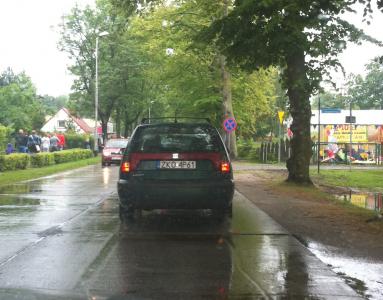 Zielony Seat Cordoba Vario - wyprzedzanie w obszarze zabudowanym (Mielno) z duża prędkością.